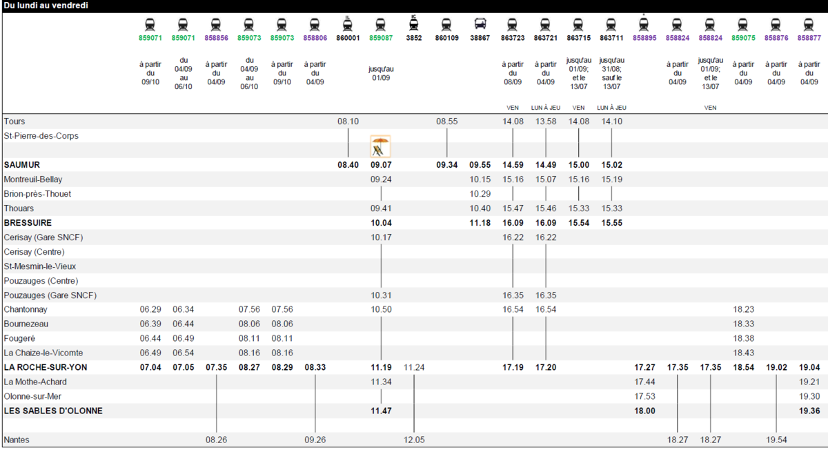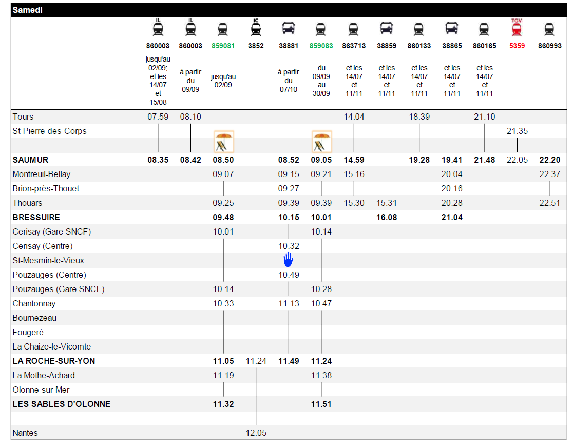 Horaires Train des Plages aller Bressuire Les Sables d'Olonne en images ci-dessous :